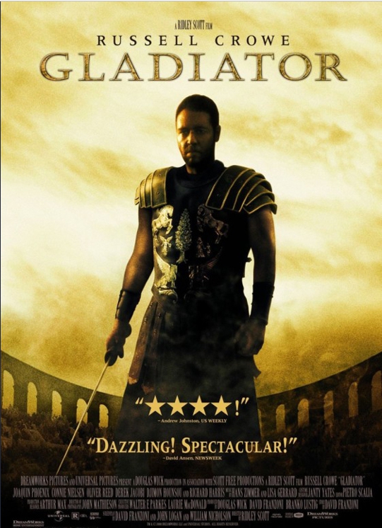 주인공 역을 맡은 러셀 크로우의 전 세계적인 명성을 떨칠 수 있게 해 준 저의 명작 영화 '글래디에이터'입니다.